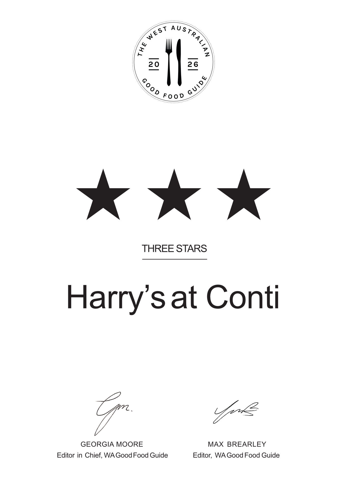 #harrysatconti #wagoodfoodguide #wagoodfoodguideawards